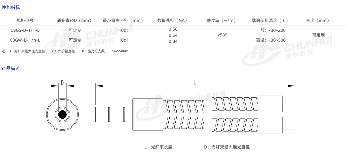 多種芯徑、數(shù)值孔徑可供選擇;