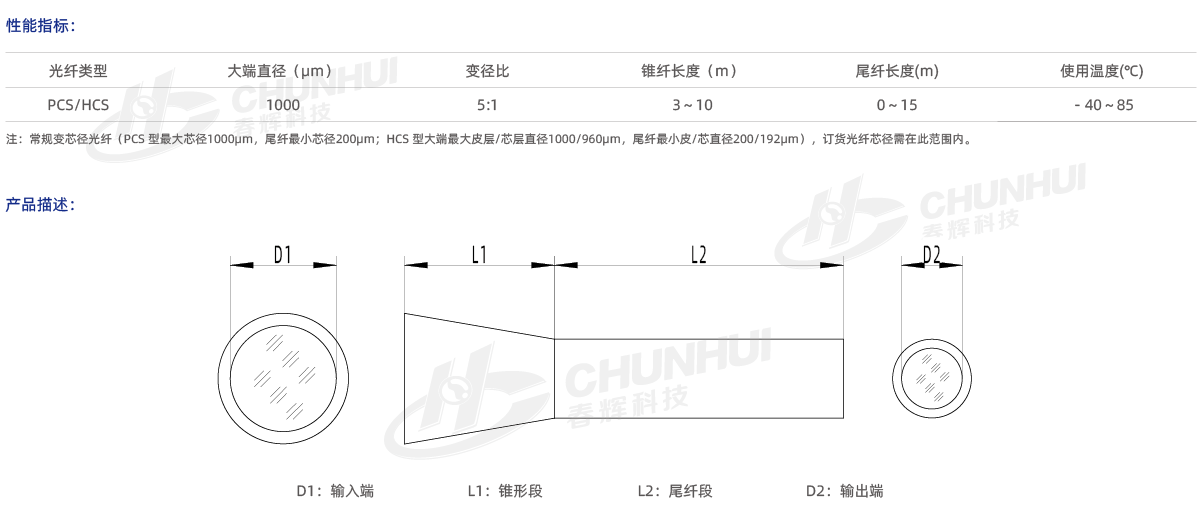 小芯徑端,可匯聚光的能量,增加能量密度,提高系統(tǒng)的穩(wěn)定性和靈活性。